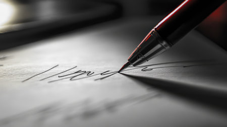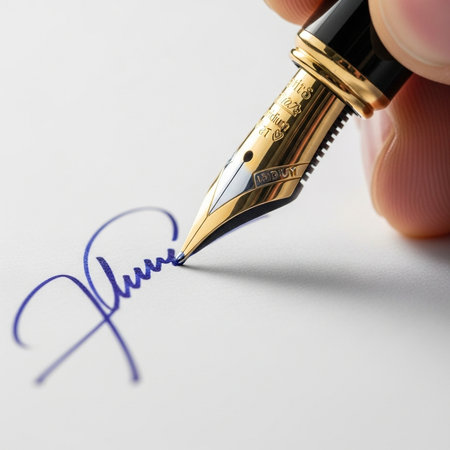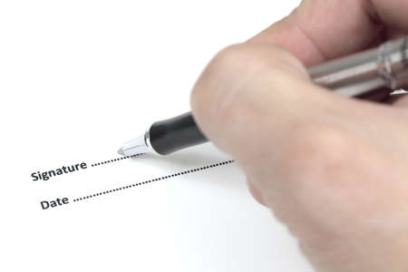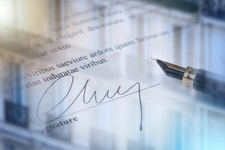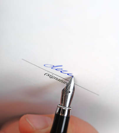a contract or document is signed by hand with a fountain pen