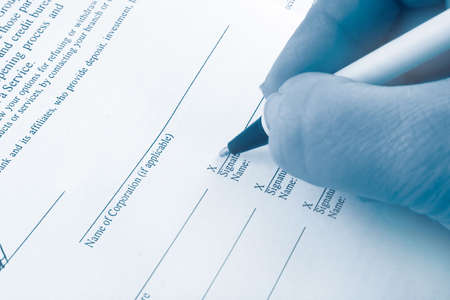 Filling in application form document applying contract signing with pen over document