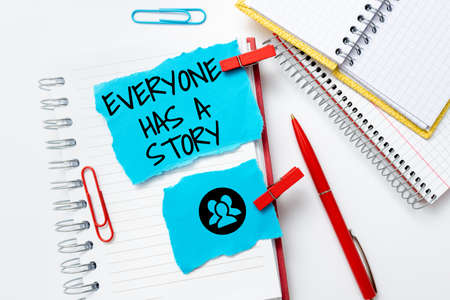 Conceptual caption Everyone Has A Story. Business overview account of past events in someones life or career Colorful Perpective Positive Thinking Creative Ideas And Inspirations