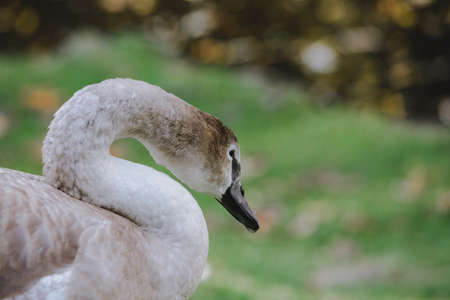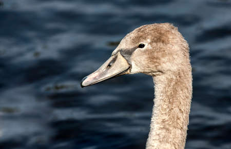 Close Up of Beautiful Baby Swan / Cygnet at the Edge of the Lake