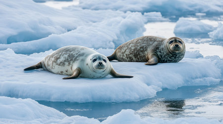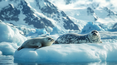 Couple of seal on the ice floe in Antarctic Peninsula, Antarctica