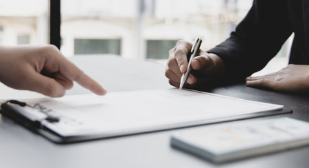 Real estate agents are drafting sales contracts for customers, drafting real estate sales contracts to be legal and fair to all parties. Real estate trading concept.