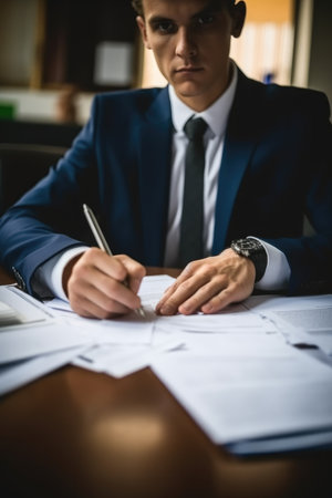 The businessman is signing a contract, a business contract. Generative AI