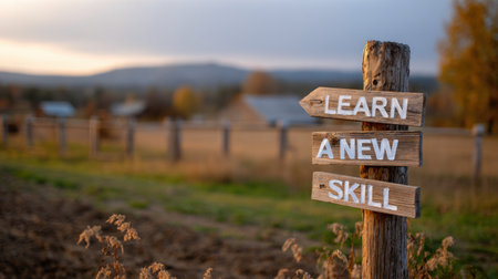 Learn a New Skill Wooden Sign in Countryside