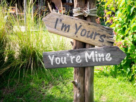 Colorful wooden signpost at the beach in Thailand. Landscape.