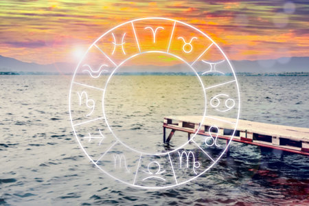 Zodiac wheel with signs against beautiful seascape