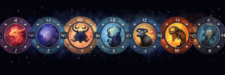 Signs of the zodiac on galaxy background