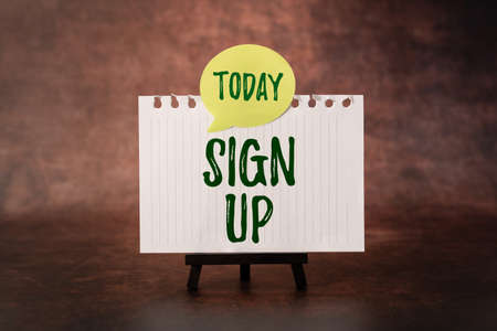 Handwriting text Sign Up. Business concept use your information to register in website team college or blog Thinking New Bright Ideas Renewing Creativity And Inspiration
