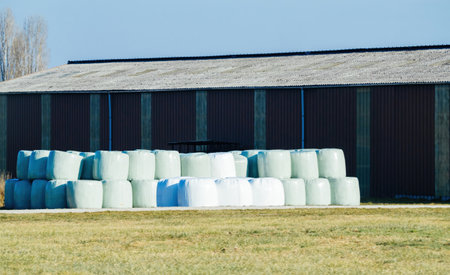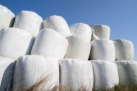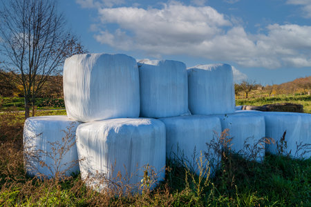 silage, bales, hay bales, plastic wrap cover for wheat cereal bales outdoor