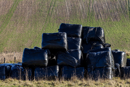 Bales of silage. Silage is fermented fodder that can be fed to rumiants.