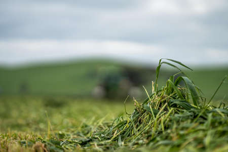Making and growing hay and silage in Australia. with tractors and machinery in a cattle farm during summer.