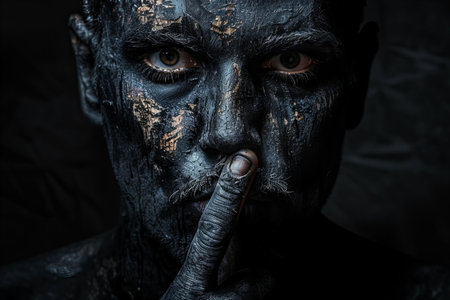 Portrait of a man with black paint on his face. Halloween theme.