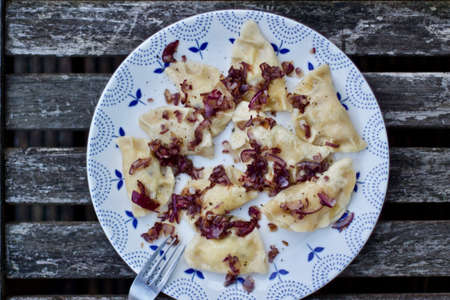 Pierogi ruskie dumplings which various topping.Popular in Galicia and Transcarpathia