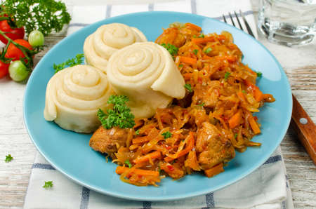 Cabbage stew with buns cooked in a steamer. German cuisine