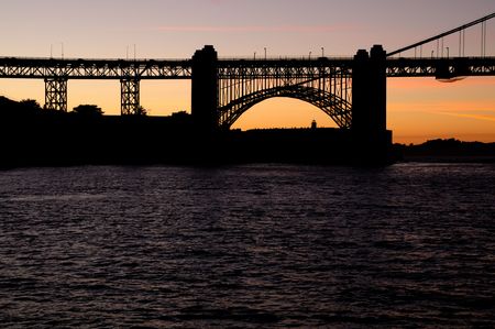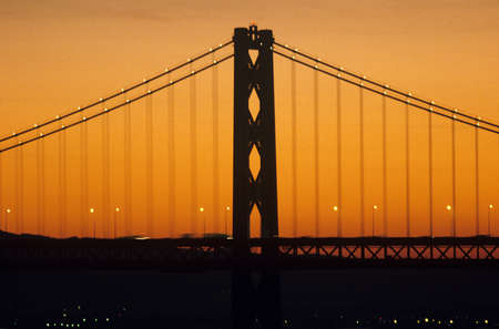 Fort Point and Golden Gate Bridge fragment siilhoutted against pacific sunset