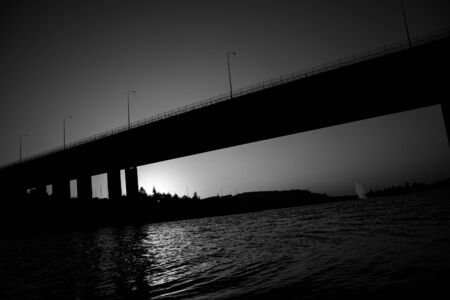 Cable-stayed bridge in Lisbon, Portugal. Black and white