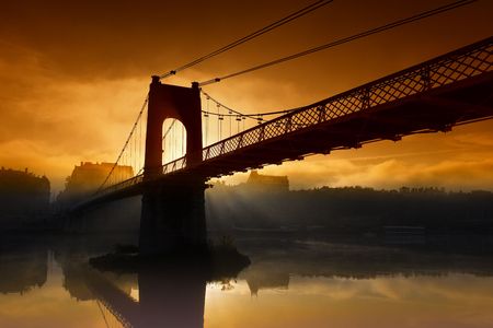 Silhouetted bridge at sunset, Sangkla, Kanjanaburi Province, Thailand