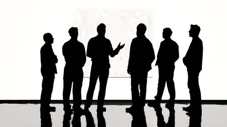 Art Historian Lecturing in a Gallery Silhouettes isolated on plain white background.