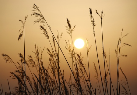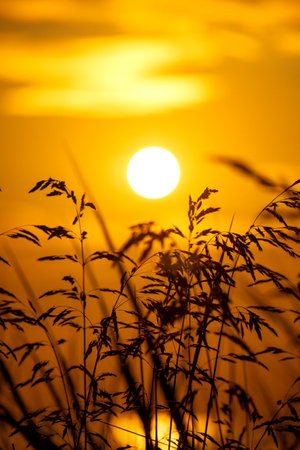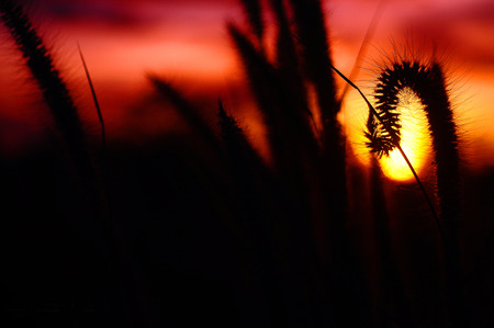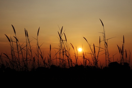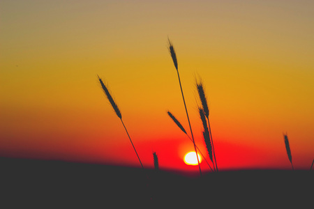 big sun , sunset and GRAMINEAE silhouette Rim Light
