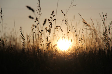 grass close-up against setting sun