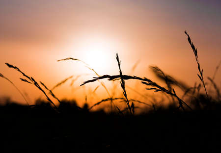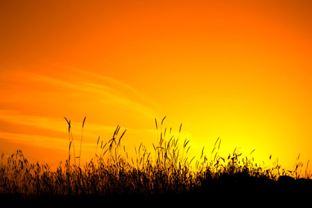 Silhouette of tall grass in orange sunrise / sunset