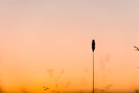 Silhouette of grass flower in nature, twilight sky as background