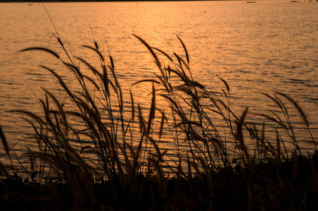 Sunset light with grass It was a beautiful evening in the countryside.