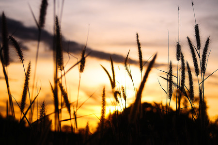Closeup silhouette grass with background of sunrise at north east of Thailand