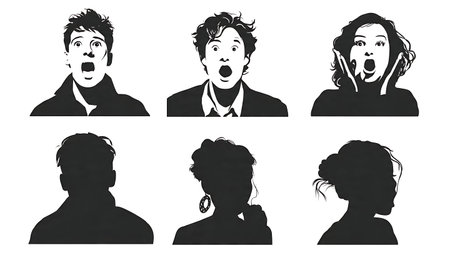 Surprised and Shocked Streamer Reaction Silhouettes isolated on plain white background.