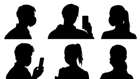 Modern Face Mask Selfie Silhouettes Pack isolated on plain white background.