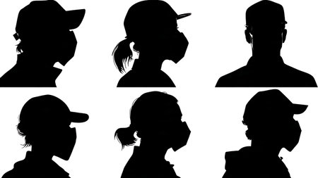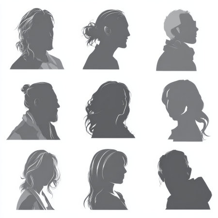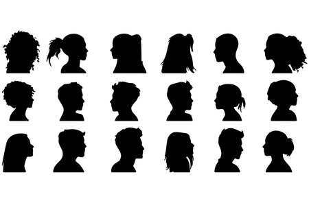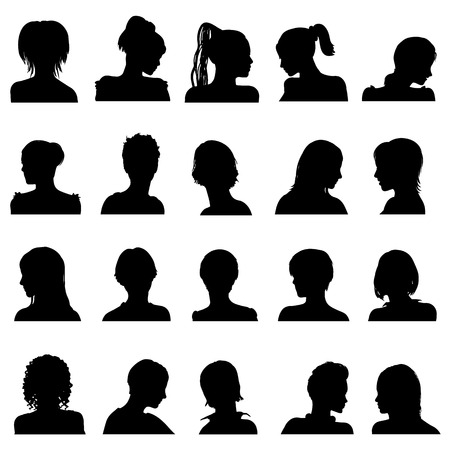 silhouette of a set of women's heads on a white background