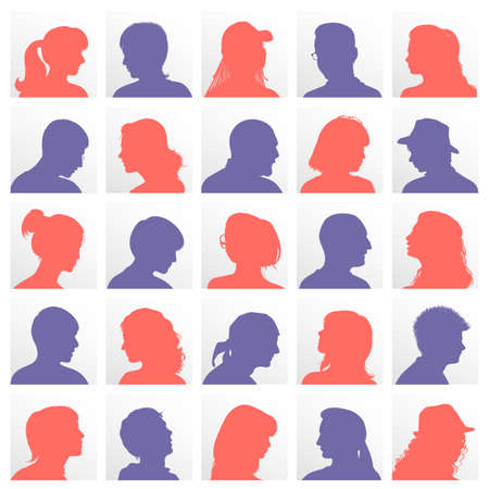 Set of persons, avatars, people heads silhouettes. People faces social network icons collection.