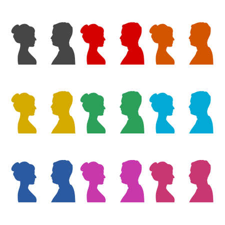Male and female silhouettes opposite each other, color set