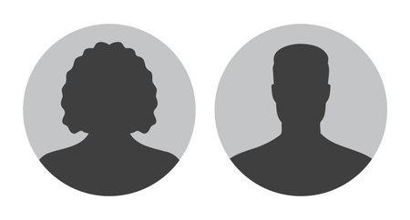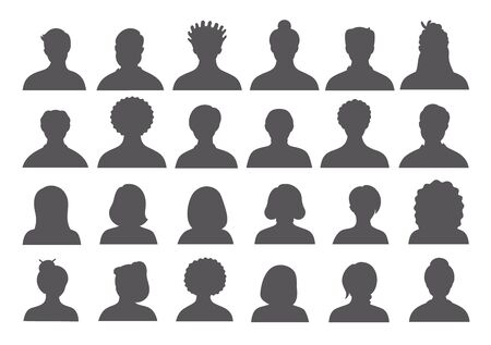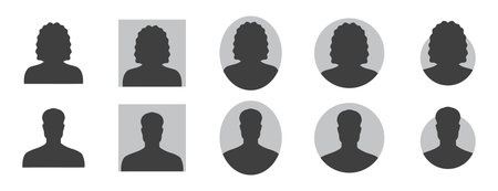 woman and man silhouette avatars or profile gray icon. male and female portraits, anonymous people icons different styles, oval, square, circle shape