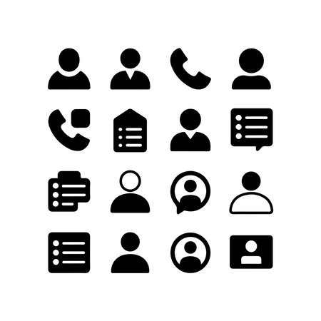 A collection of solid icons representing contact list elements, presented as a single image isolated on a white background.