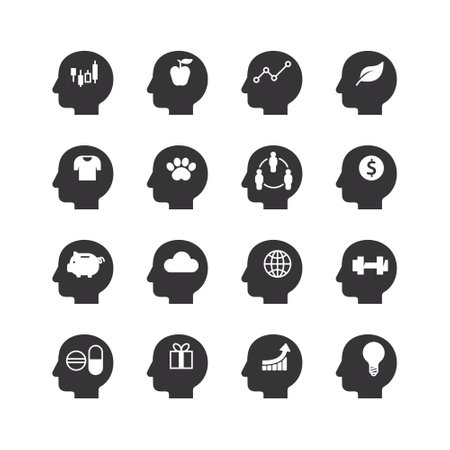 Mental Health and Wellbeing. Icons of thinking and psychological state.