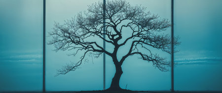 AI Generated. Abstract Silhouette of Tree with Blue Glass Background