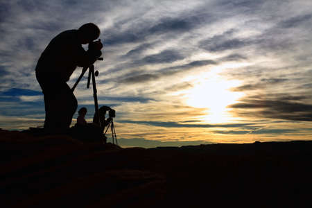 Silhouette of photographer, taking pictures of the beautiful moments during the sunset ,sunrise.