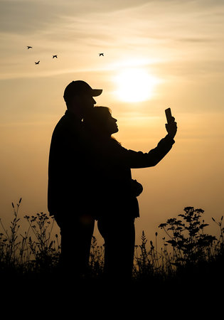 A captivating scene showcasing silhouettes of people against a vibrant sunset, highlighting a moment of connection and tranquility in nature's beauty.