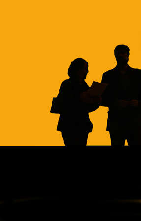 People standing behind a trunk and are listening Silhouette sunset blur for background.