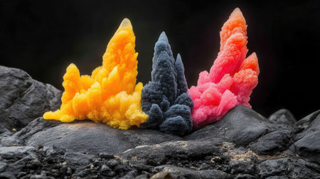 Vibrant Colorful Crystal Formations on Dark Rock Abstract Nature Art Pink Grey Life Black Macro
