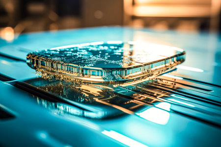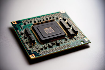 A High tech microchip on circuit board with intricate details and design