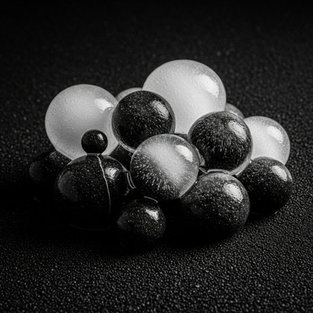 Foam balls in bright neon colors on a textured black surface, creating bold visual contrast