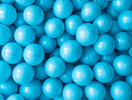 A low-angle shot of plastic balls piled up in a children's play pit, creating a fun perspective.