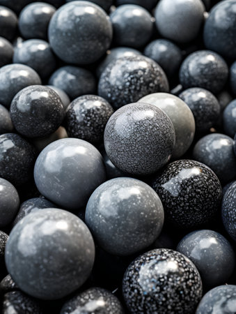 A close-up of a field of colorful, round balls with a variety of textures. The depth of field makes the balls in the background out of focus, creating an abstract composition.