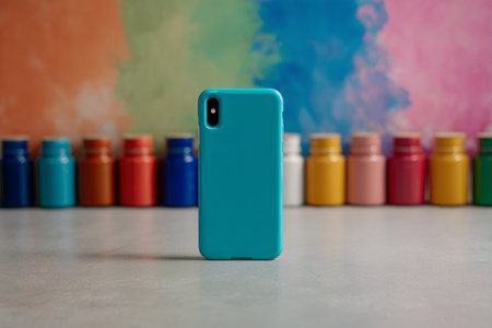Minimalist mockup of solid color phone cases on clean background, perfect for tech branding and e-commerce displays.