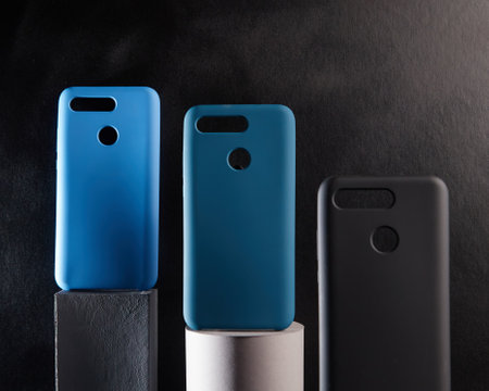 Smartphone protective covers on black background