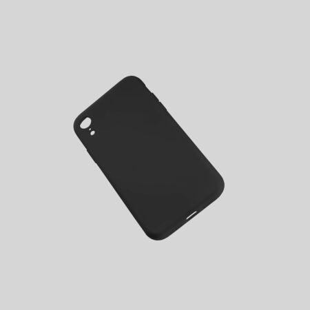 Template of a black container on a mobile phone, isolated on a white background, for design presentation. Mockup plastic smartphone case for advertising in the online store