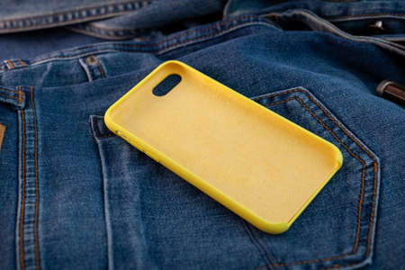 multi-colored mobile phone case on a denim background