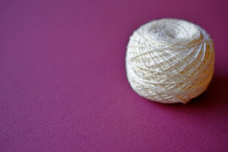 A white spool of thick threads on a purple background